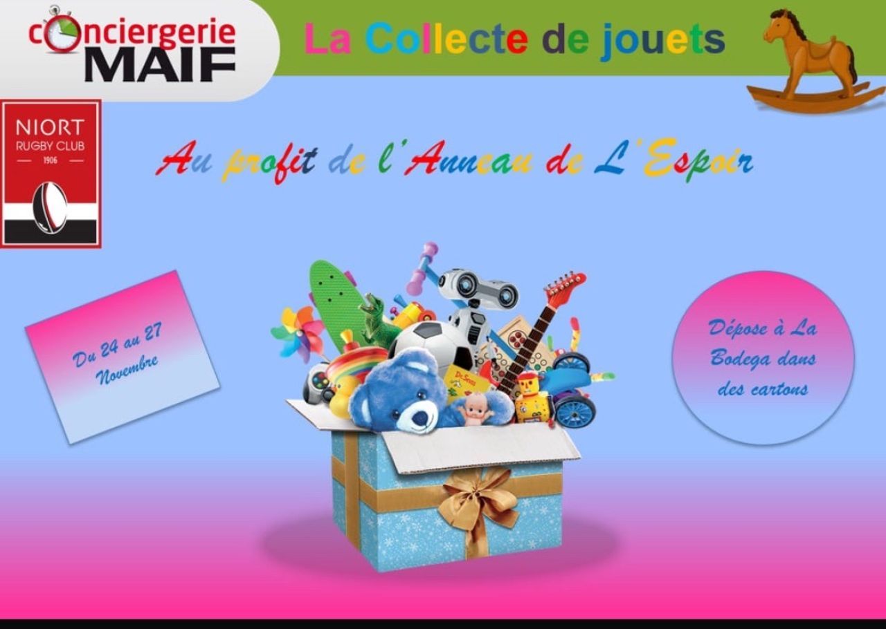 📅 Dates clés : Dépôt des jouets : du lundi 24 au jeudi 27 novembre à la Bodega (Espinassou)